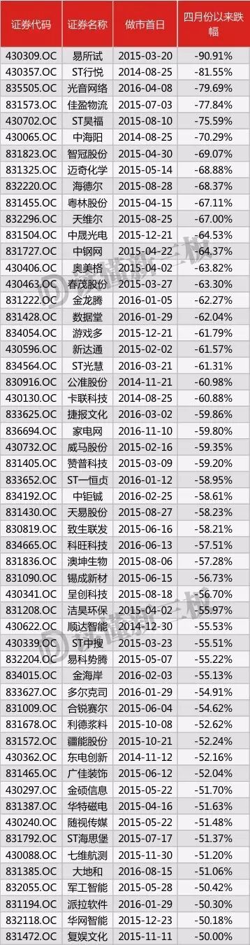 今年4月份以来,新三板公司股价的下跌,可以用「惨烈」来形容。