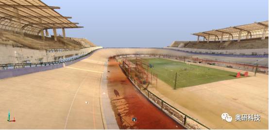 通过标靶纸,将绝对坐标传递到赛道的三维点云上,并且减小了累计误差。有了这组细致的空间三维数据,赛场的改造便可以实施BIM可视化三维设计,需要添加哪些附属设施,直接在点云环境中进行三维设计,完成后即可看到模拟化的施工后效果;对赛道进行周期性的数据采集,即可获得不同时期赛道的变化情况,从而起到监测作用,保证赛道空间分布的准确性,是运动员们正常发挥训练能力的根本,对于体育场来讲,这还是非常必要的。