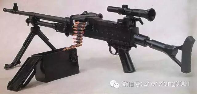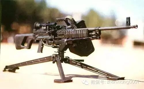 95式5.8毫米轻机枪:是95式班用枪族中的轻机枪,它与95式自动构成班用枪族,现已陆续装备部队.口径:5.8mm 初速:970m/s 枪重:3.95Kg 枪长:840mm 弹量:75 有效射程:600m,75发弹鼓供弹。使用87式5.8毫米普通弹,在300米距离上能够穿透10毫米厚的A3钢板;在600米距离上,看真相加zhenxiang0001弹头贯穿14厘米厚的松木板。大量的技术数据和实弹结果表明,国产95式5.8毫米班用轻机枪已具备了世界名枪所共有的标准,即射击精度高、尺寸短、重量轻、动作可靠、使用寿命长、瞄具功能齐全、威力大、后坐力小、整体结构紧凑、布局合理、外形流畅、美观大方、握持舒适、人机工效好等。