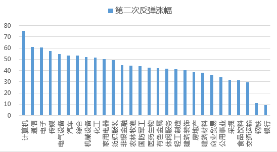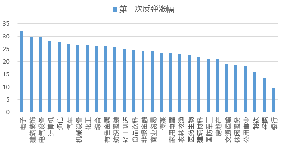 从行业上分析,三轮反弹各行业上涨情况分别如下: