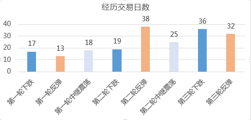 (1) 经历交易日数:各类型的走势经历的交易日数后一轮比前一轮都在增加,每阶段的时间窗口总体上在拉长。