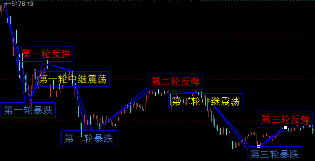 纵向看,日均下跌幅度大于日均反弹幅度,后一轮下跌或反弹的幅度弱于上一轮,中继震荡均为下跌势;