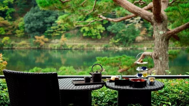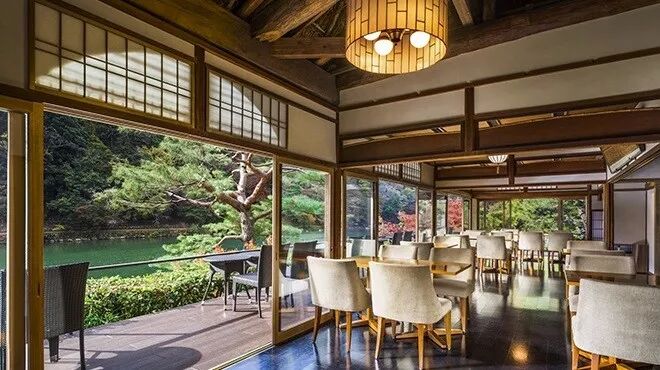 这是坐落于岚山保津川沿岸的酒店ラグジュアリーコレクションホテル里的咖啡厅。在这里可以饱览保津川风景,享用正宗日式下午茶(需预约)。