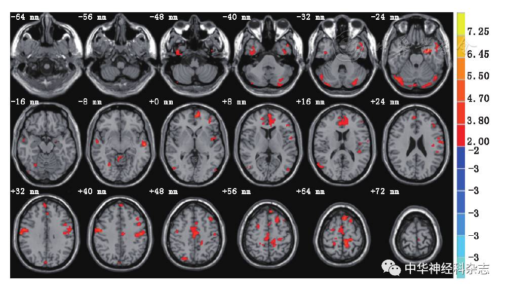 招募2013年11月至2015年4月就诊于北京协和医院神经内科门诊的ALS患者16例。所有受试者均符合2000年修订版El Escorial标准临床拟诊或确诊的诊断标准[11],为右利手,否认ALS家族史,否认其他神经精神疾病史,否认中毒、酒精及其他物质依赖史。排除标准:肝肾功能、甲状腺功能、维生素B12、叶酸、感染、肿瘤相关检查异常;存在MRI检查禁忌;头颅MRI发现占位性病变、脑积水和多发脑白质病变等。
