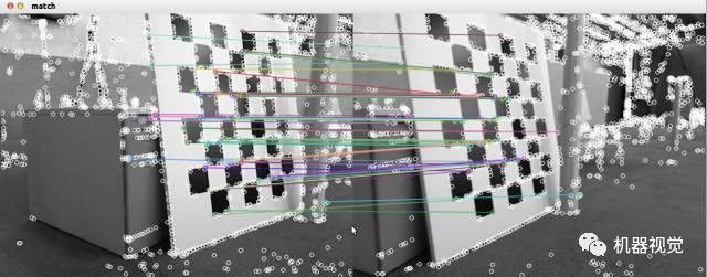 R为相机的姿态,C为相机的标定矩阵。R是不断运动的,而C则是随着相机做死的。ICP的模型稍有不同,但原理上也是计算相机的姿态矩阵。原则上,只要有四组匹配点,就可以算这个矩阵。你可以调用openCV的SolvePnPRANSAC函数或者PCL的ICP算法来求解。openCV提供的算法是RANSAC(Random Sample Consensus,随机采样一致性)架构,可以剔除错误匹配。所以代码实际运行时,可以很好地找到匹配点。以下是一个结果的示例。