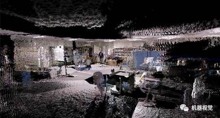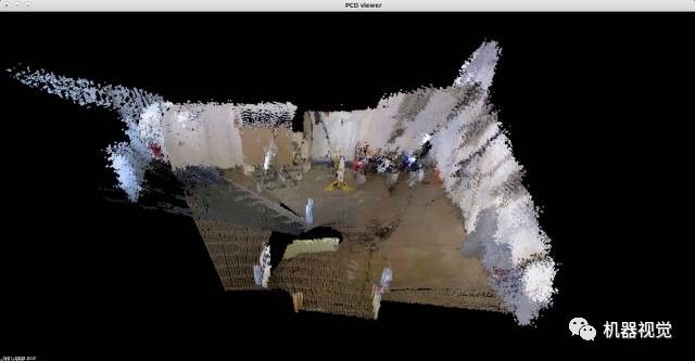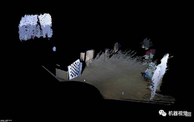 有同学会说,那只要不断匹配下去,定位问题不就解决了吗?表面上看来,的确是这样的,只要我们引入一个关键帧的结构(发现位移超过一个固定值时,定义成一个关键帧)。然后,把新的图像与关键帧比较就行了。至于建图,就是把这些关键帧的点云拼起来,看着还有模有样,煞有介事的: