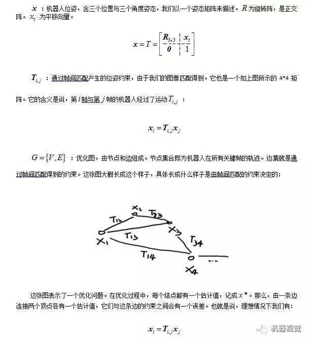 注意到这里的建模与前文有所不同,是一个简化版的模型。因为我们假设帧间匹配时得到了相邻帧的变换矩阵,而不是把所有特征也放到优化问题里面来。所以这个模型看上去相对简单。但是它很实用,因为不用引入特征,所以结点和边的数量大大减少,要知道在图像里提特征动辄成百上千的。