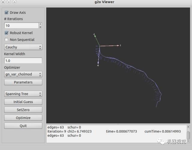 程序结束时调用optimizer.optimize( steps )进行优化。优化完毕后读取每个节点的估计值,此时就是优化后的机器人轨迹。
