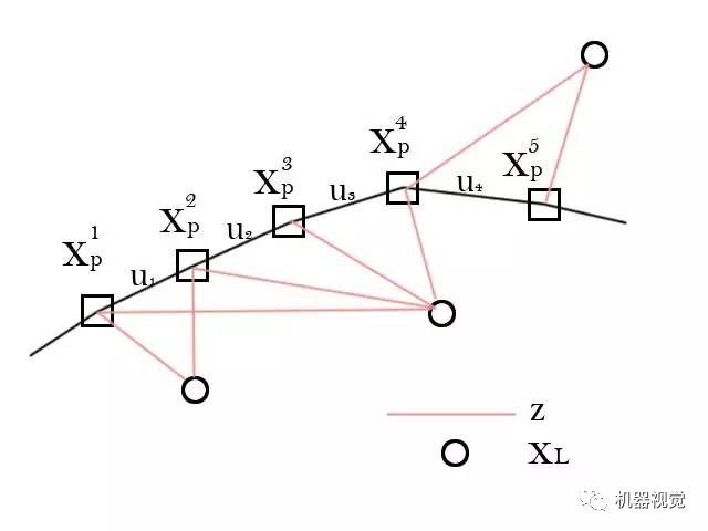 不管你用哪种参数,后面两个方程你都需要知道。前一个叫运动方程,描述机器人怎样运动。u是机器人的输入,w是噪声。这个方程最简单的形式,就是你能通过什么方式(码盘等)获得两帧间的位移差,那么这个方程就直接是上一帧与u相加即得。另外,你也可以完全不用惯性测量设备,这样我们就只依靠图像设备来估计,这也是可以的。