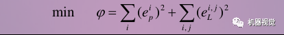 我们得到了一堆误差,把这些误差平方后加起来(因为单纯的误差有正有负,然而平方误差可以改成其他的范数,只是平方更常用),就得到了平方误差和。我们把这个和记作phi,就是我们优化问题的目标函数。而优化变量就是那些个xp, xL。