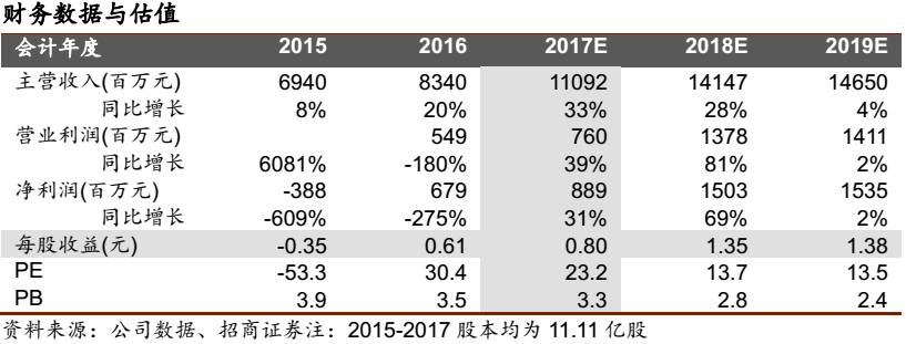 盈利预测与估值:我们预计公司2017-2019年的归母净利润分别为8.89/15.03/15.35亿元,对应EPS为0.80/1.35/1.38,给予2018年15-20倍PE得出目标价20.25-27.00元,较停盘价具有9%-45%的上涨空间,给予“强烈推荐-A”评级。