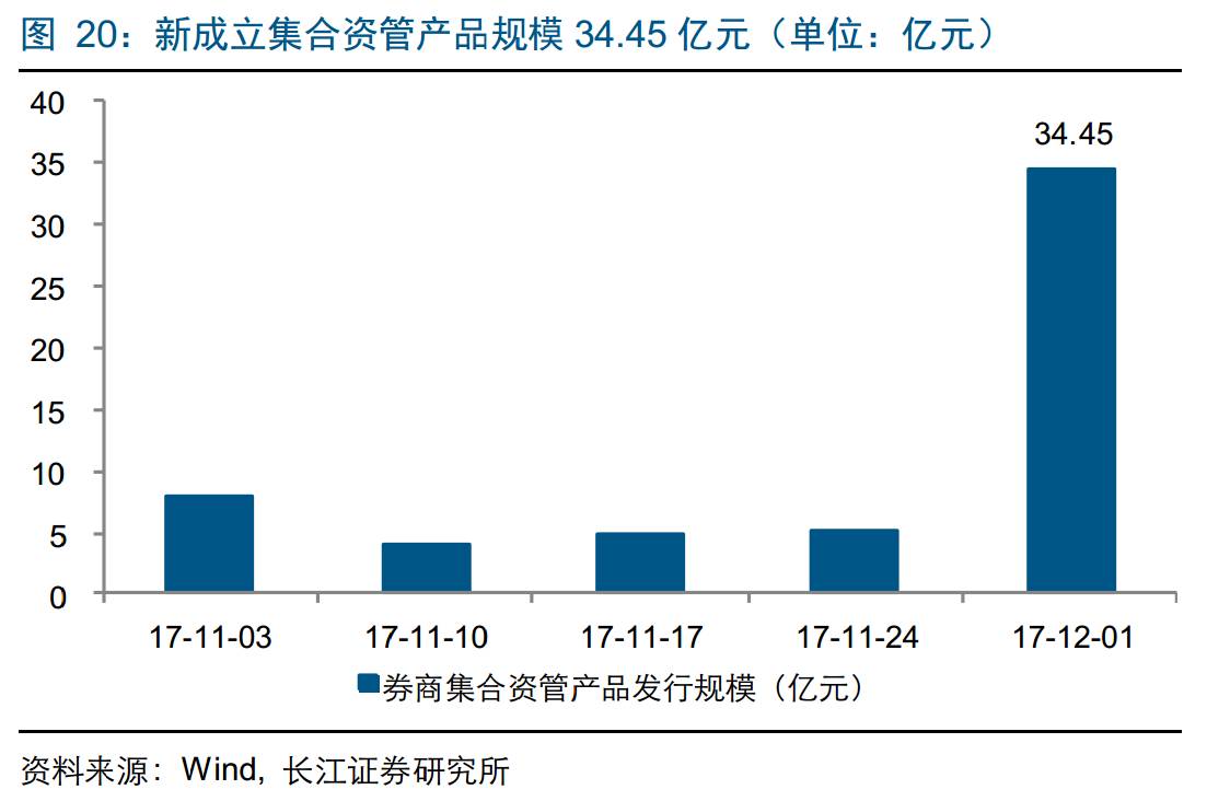资管业务:截至12月1日一周内,券商集合资管发行规模34.45亿元;集合资管存量规模2.02万亿元。