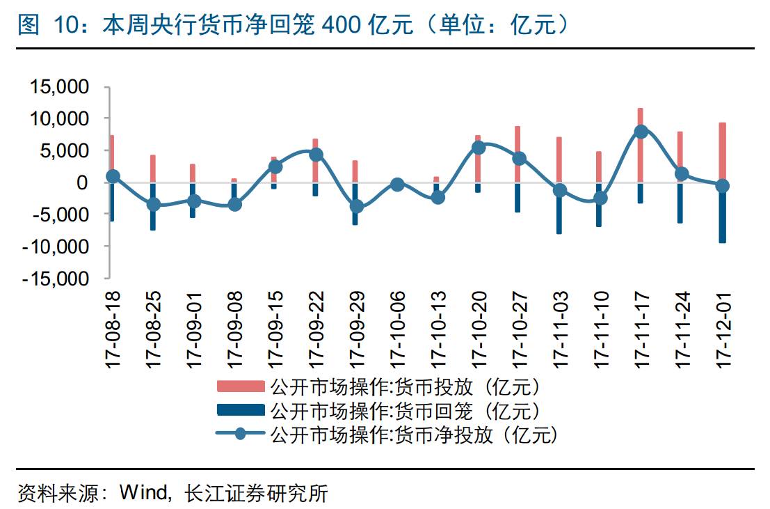 公开市场操作:截至12月1日一周内,货币净回笼400亿元,其中货币回笼9500亿元,货币投放9100亿元。