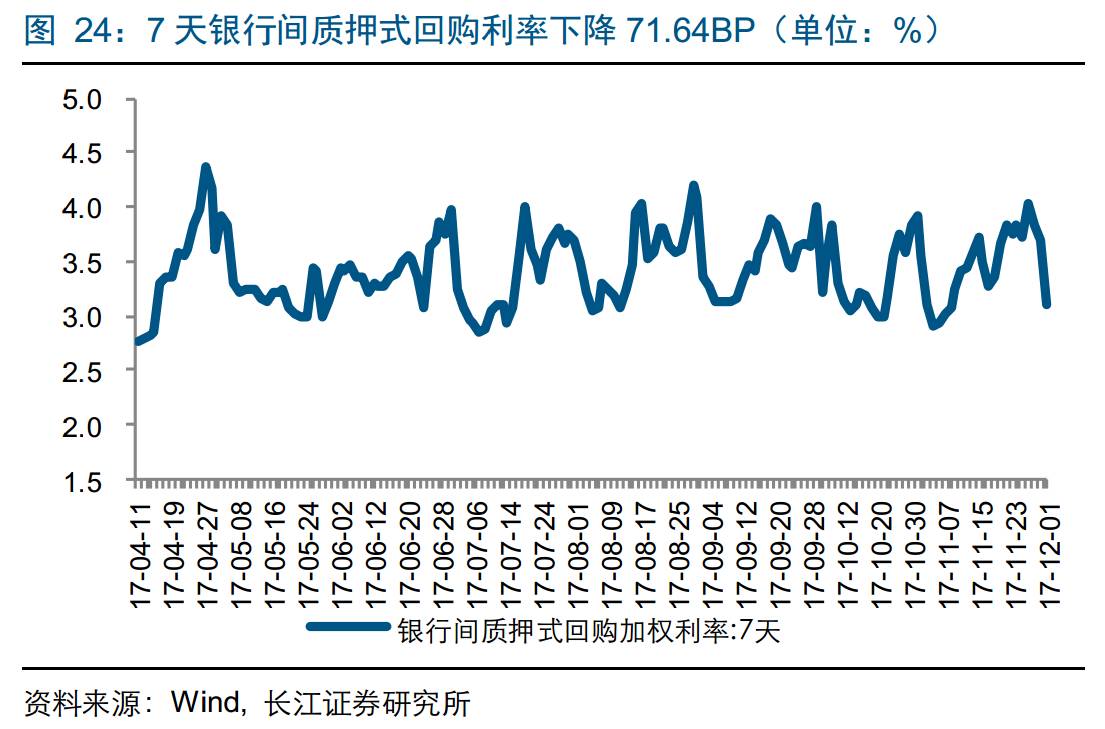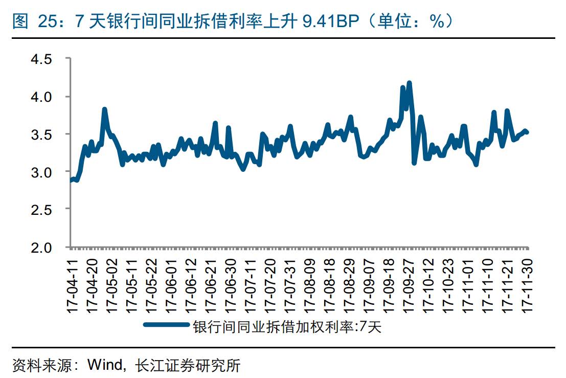 流动性观察:截至12月1日,7天银行间质押式回购利率为3.1112%,较上周环比下降71.64个BP;7天银行间同业拆借利率为3.5101%,较上周环比上升9.41个BP。