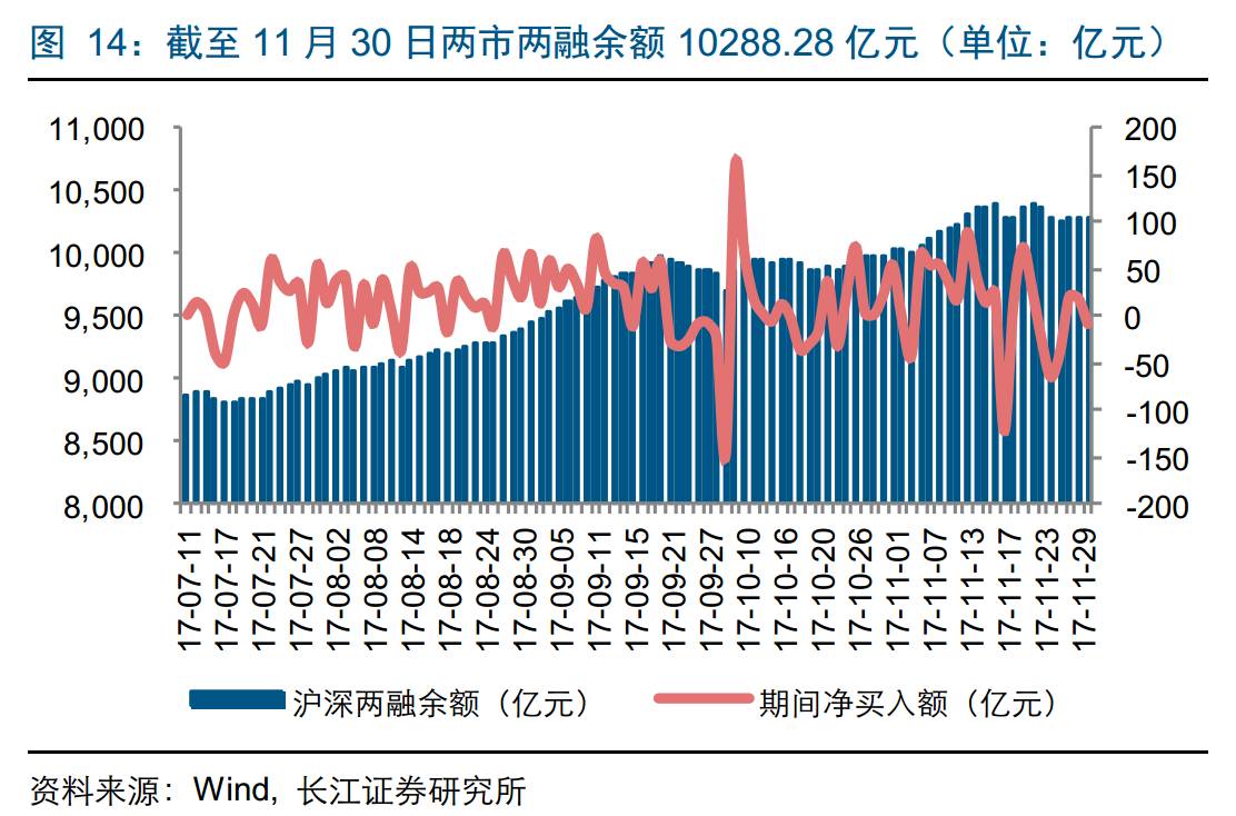 融资融券:截至11月30日,两融余额10288.28亿元,较上周环比下降0.77%。