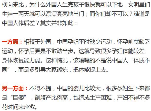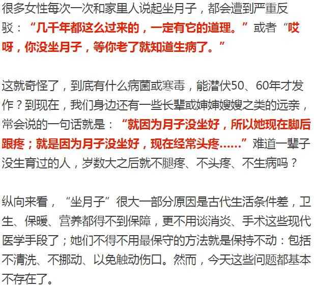今天国人心中的“坐月子”不是多家休息、恢复身体,而是有明确含义的:包括一个月不能洗头、不能见风、不能刷牙,能躺着就不要坐着,能坐着就不许站着;更极端的还有不能洗澡、不能沾水、一直卧在床上……