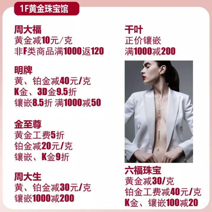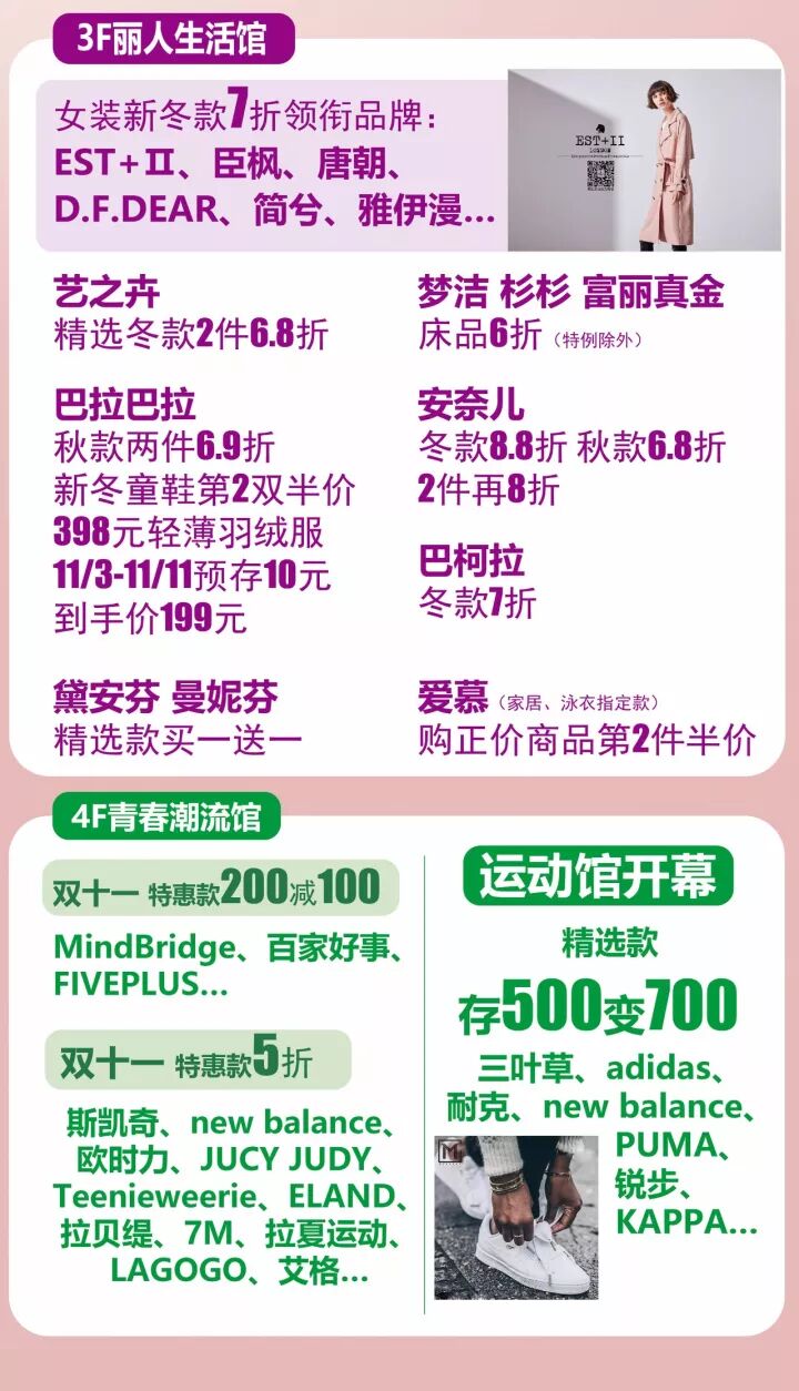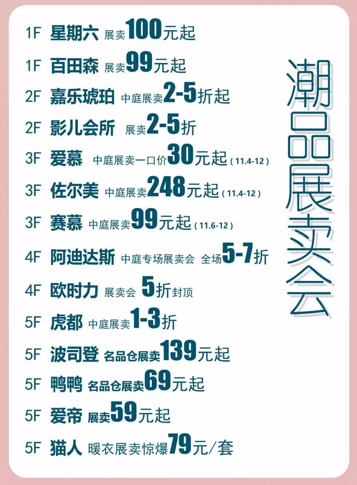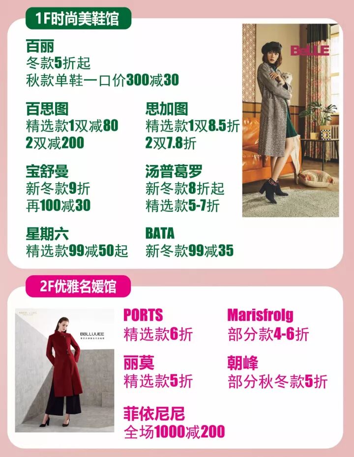 爱慕 2楼B馆精选款5折新款600减100元诗篇 2楼B馆精选大衣2折起皮草3折起Mind Bridge 2楼C馆精选款5折起再享满1000返100拉夏贝尔 2楼C馆独家活动精选新冬款5折再享满1000返100