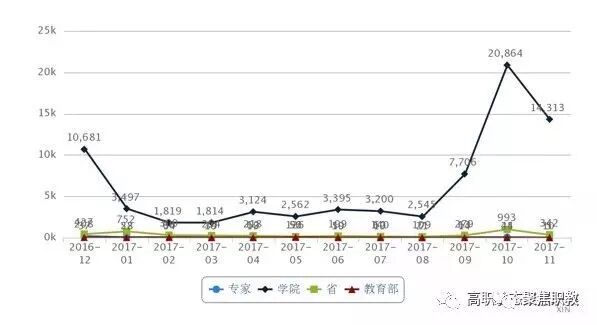 平台开放期内(2017年7月1日至12月11日),共登录49578次,平均登录次数达到36次/校,其中登录次数最多的院校达621次,省级用户登录次数最多的达到330次,使用频次较往年有提高;但仍然有部分院校较少登录平台,其中少于等于2次的院校数为73所,从则面反映部分学院在数据上报后没有认真核对所上报数据的准确性,以及对平台应用方面还需加强;目前平台提供了部分全国性的数据支持,可作为学院进行诊改的参考数据(如:全国中位数、全国专业分析、全国就业分析等)。从整体登录情况看,高峰期主要集中在数据上报最后一个月,平常月份登录次数较少,从而反映出院校还未形成对状态数据采集的日常使用,特别是数据截止日期前院校集中上报现象值得注意及反思。