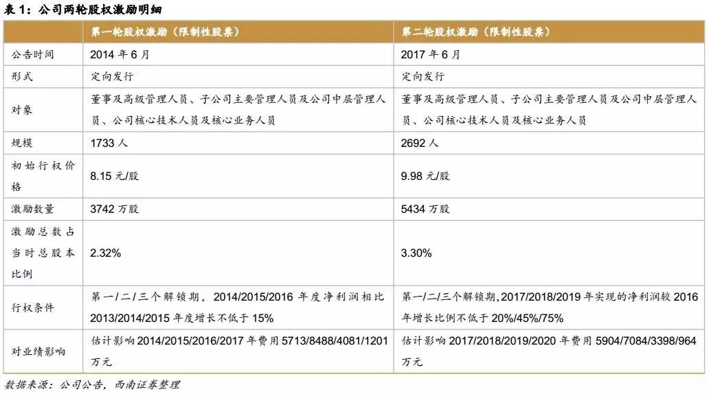 公司上市至今共推出过两轮股权激励计划,主要针对公司董事、中高层管理人员及核心技术人员。行权价格均低于当时股价,具有实质性的激励效果。截至2016年,第一轮股权激励的行权条件都已达到,激励效果得到了现实的体现。