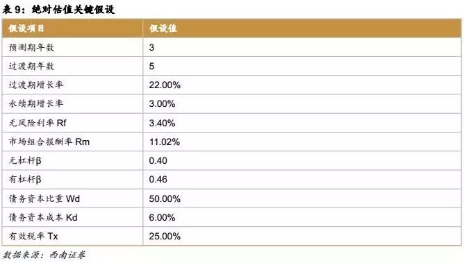 我们采用FCFF模型对公司进行的估值结果为18.91元/股。但由于绝对估值各参数对股价弹性较大,我们采用相对估值结果。