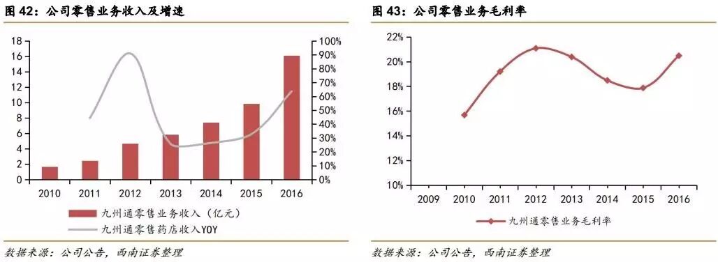 我们估计公司2016年零售药店终端收入规模约130亿元,占公司批发业务比重约21%。过去几年增速约20-25%。公司在零售药店终端的发展机遇主要体现在医药分家、两票制政策及零售药店行业的税收规范。