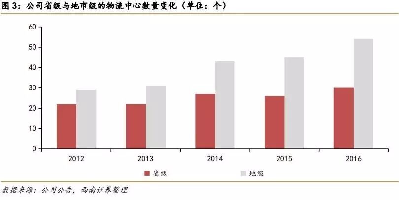 从业务覆盖区域来看:公司已于2016年完成全国30个省份的省级物流中心建设,形成了覆盖全国的物流网络框架,未来的发展重点将是在省级平台的基础上进一步拓展地市级业务。我们认为目前公司在全国的医药流通市占率仅4.5%左右,随着各地物流网络的建设,未来发展空间仍广阔。