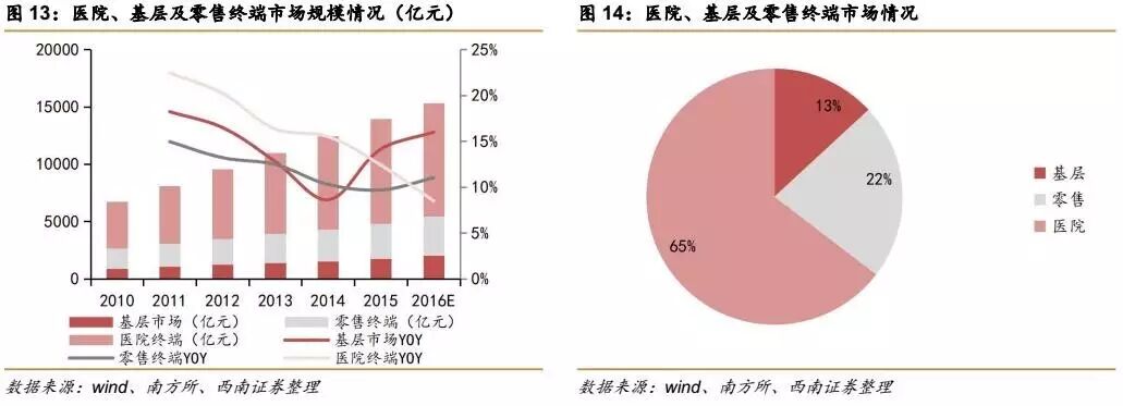 与基层医疗机构类似,零售药店作为医院处方外流的承接者,行业增速体现出加快趋势,据南方所的统计,其2016年的增速约10%,相对2015年同比提升约1.5个百分点。零售药店终端亦为公司的优势终端,将受益于医药分家。