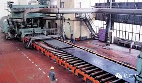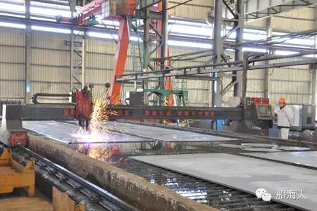 钢材备料——钢材预处理线(矫平、喷砂除锈、底漆)——放样号料——构件边缘加工(切割、加工焊接坡口)——构件成型加工(非平直构件加工成应有曲度)——船体零部件装配(平面接板、框架组立)。