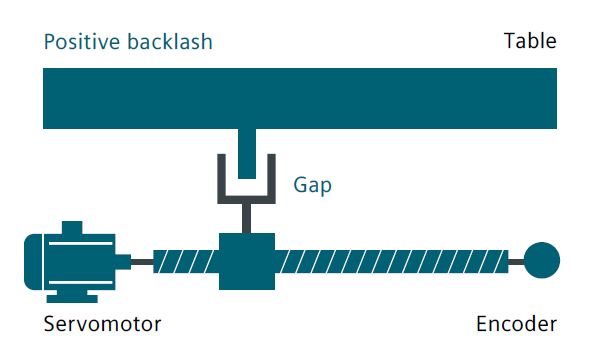 在机床移动部件和其驱动部件,如滚珠丝杠,之间进行力的传递时会产生间断或者延迟,因为完全没有间隙的机械结构会显著增加机床的磨损,而且从工艺上讲也是难以实现的。机械间隙导致轴/主轴的运动路径与间接测量系统的测量值之间存在偏差。这意味着一旦方向改变,轴将移动得过远或过近,这取决于间隙的大小。工作台及其相关编码器也会受到影响:如果编码器位置领先工作台,它提前到达指令位置这意味着机床实际移动的距离缩短了。在机床运行,通过在相应轴上使用反向间隙补偿功能,在换向时,以前记录的偏差将自动激活,将以前记录的偏差叠加到实际位置值上。