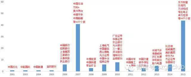 2015年也是超级大牛市,新增千亿市值公司44家。新发或重组的大盘股申万宏源、国泰君安、温氏股份、招商蛇口都在上市首日引发市场高度关注,他们也毫无意外突破千亿;各行业都有了新的突破,东方财富、乐视网、中航资本、兴业证券、中兴通讯、江苏有线、陆家嘴、康美药业、小商品城、上海莱士等一大批都是我们熟悉的名字。