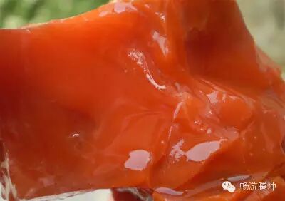 红色主体可以明显看见由朱砂点聚集而成,也有的呈现出近似火焰的纹理。有的朱砂红的火焰纹甚是妖娆,有一种独特的美感。