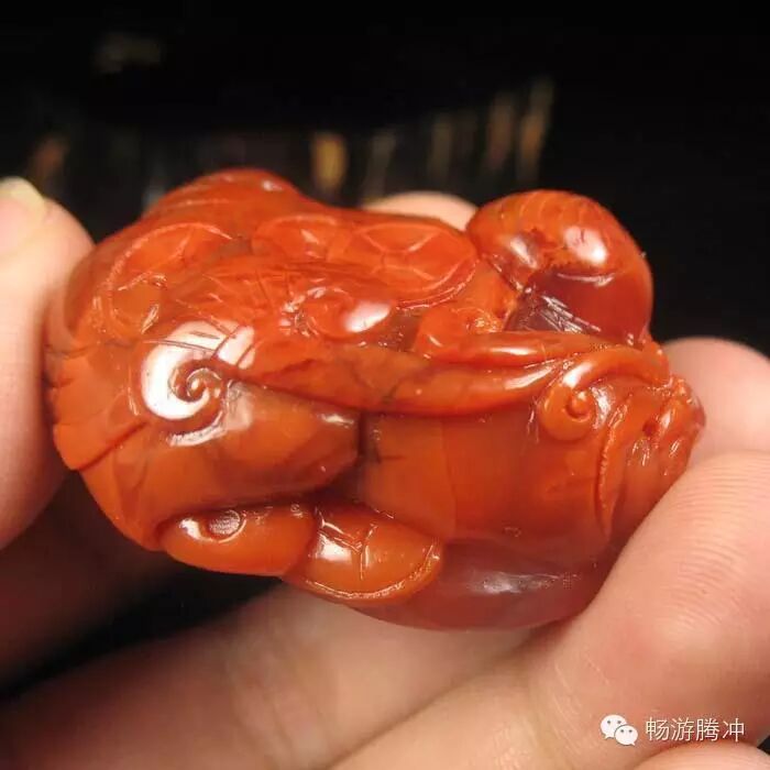 云南的保山,这个地点在今天仍然供应着新南红制品九成以上的原料,南红原矿虽然被认为于清晚期绝迹(所谓清乾隆绝迹基本属于以讹传讹,我们曾经听到甘南区的藏民老人讲述在1949年之前还购置新南红,也看到过民国时期还在贩卖给外国人品相十分完好的大量南红珠串的照片,甚至北京故宫所藏的南红手串也明显具有清晚期手串的特点。这些证据都可以提供南红至早在清晚期才绝迹的旁证),但是今天的保山仍然每年可以发现一定数量的原矿遗存供现代人予以加工。亦有说法说原来的老矿几十年前已经废弃,保山南红矿都是新矿坑所出。我们在市场上看到的诸多的所谓”柿子红“。![]()