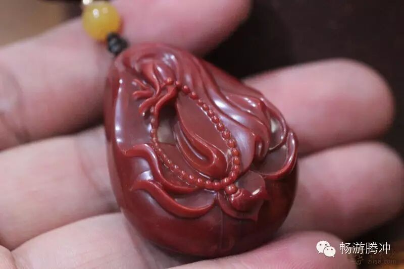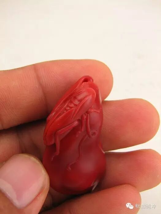 红颜色与白色相伴生,比如常见的红白蚕丝料,其中红白分明者罕见,通过巧妙的设计雕刻,可达到意想不到的艺术效果。