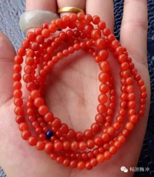 剩下的历史几乎就是每个南红爱好者耳熟能详的了,南红作为深海红珊瑚的替代品正式走上藏区的舞台。由于藏区使用的红珊瑚全部为所谓倒枝珊瑚,只产于日本海峡和台湾海峡,贸易的相对困难和本身珊瑚材质的珍贵决定了红珊瑚只是属于藏区高层的奢侈品,而广大的藏民也同样需要这些红色的寄托,于是南红真正的以批量产品的形式登上历史舞台,成为众多信徒的随身配饰。这种情况至早结束于清晚期,伴随着我们通常认为清晚期南红矿藏的枯竭,南红珠子的制作才基本告结束。