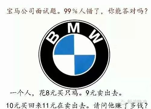 一个人,花8元买只鸡。9元卖出去。10元买回来、11元在卖出去。请问他赚了多钱?