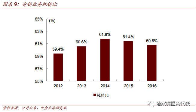 ► 分销:销售成本主要是分销业务购买药品和其他医疗产品用于转销而产生的成本。预计2017年该板块的毛利率小幅上升0.2个百分点至6.10%,因为产品结构调整。