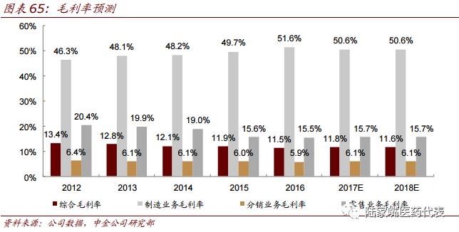 ► 零售:销售成本主要包括零售业务购买药品和医疗产品用于转销产生的成本。预计2017年该板块的毛利率增长0.2个百分点至15.70%。