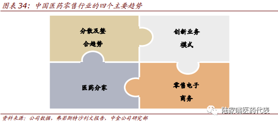 药品零售市场整合潜力巨大。,2015年百强零售商的市场份额约28.8%,市场集中度较低。创新业务模式的革新,医药分家政策的推进以及零售电商市场的发展推动零售行业发展,我们认为药品零售行业整合的潜力巨大,全国巨头受益更多。