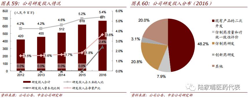 聚焦精仿和大品种二次开发。公司坚持仿创并举,致力于为重大疾病和慢性病提供安全有效的治疗药物,已经建立了以中央研究院为技术核心的多层次研发体系。研发工作以临床需求为导向,生物制品与化学药小分子及中药协同发展;主要聚焦肿瘤、免疫及心血管领域的创新药和心血管、消化系统、精神神经领域、抗肿瘤、抗风湿以及糖尿病领域的大品种精仿,同时积极开展仿制药一致性评价、中药的新药研究和已上市大品种的二次开发。