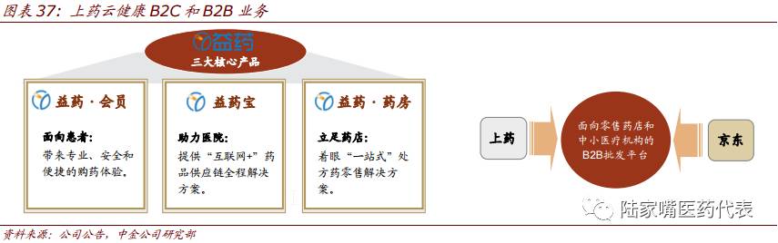 ► 上药云健康致力于为患者提供专业、安全、便捷的处方药购买和全面的长期健康管理服务。其先后与京东、万达、丁香园等开展战略合作,推动电商战略布局的落地和深化,并且引进了京东、IDG等战略和财务投资者。