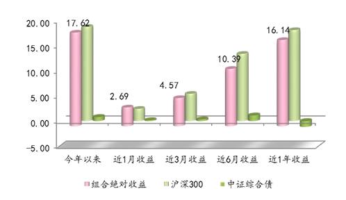 平衡型组合中股基、债基配置均匀,因此其比较基准处于沪深300和中证综合债之间,而平衡型组合的收益逼近沪深300,说明其以较低的风险获得了相当高的收益。