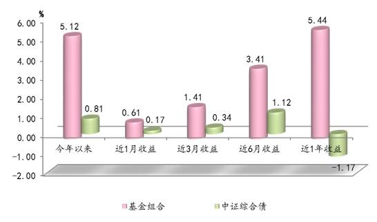 保守型组合和稳健型组合中货基和债基仓位占比很重,因此以中证综合债为比较基准。