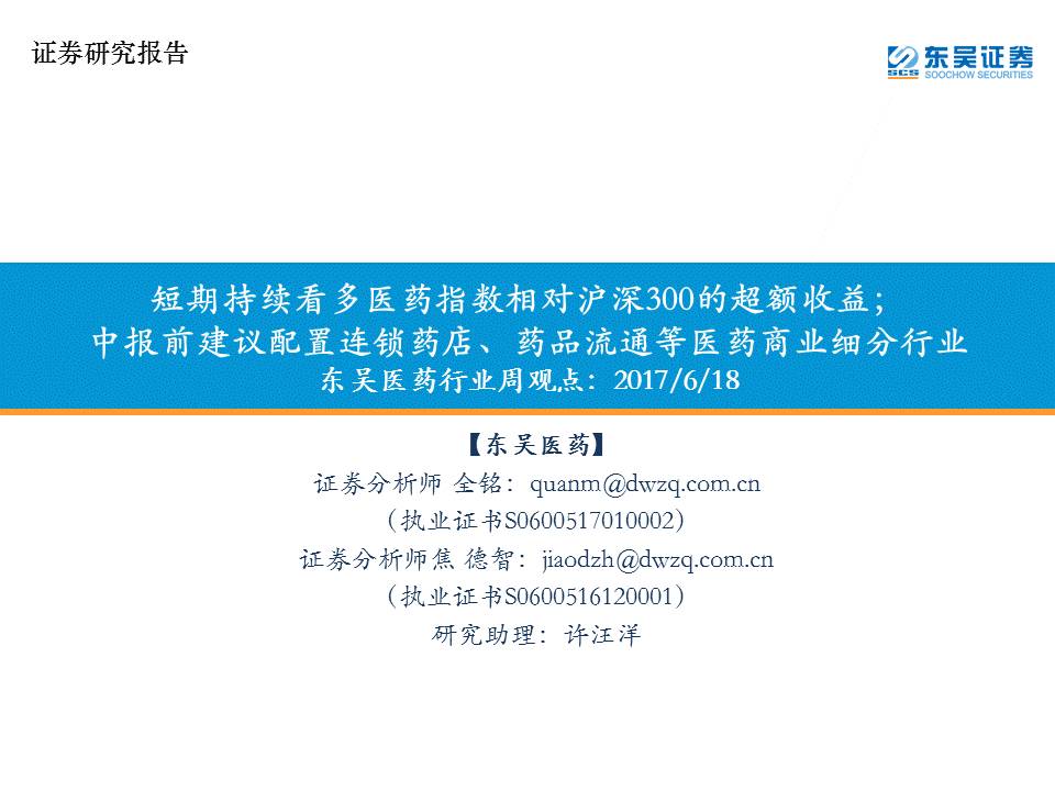 最近两周医药指数出现反弹,连续两周表现优于沪深300,但我们判断医药指数相对于沪深300的反弹仍未到位,因此短期继续看多医药指数相对沪深300的超额收益。建议配置上海医药、九州通、片仔癀、恒瑞医药等细分行业龙头,以及关注连锁药店标的益丰药房、老百姓、一心堂。