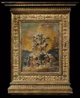 米开朗基罗(1475-1564),生于佛罗伦萨附近的卡普莱斯,意大利文艺复兴时期伟大的绘画家、雕塑家、建筑师和诗人。他和达芬奇、拉斐尔并称文艺复兴三杰的艺术巨匠。他的艺术以雄浑、豪放、宏伟、刚健和充满激情著称。米开朗基罗代表了欧洲文艺复兴时期雕塑艺术的最高峰,“神圣而痛苦的生涯”是法国现代著名作家罗曼·罗兰对米开朗基罗一生的高度概括,他是文艺复兴时期的代表,整个世纪光荣都是属于他的。不独是艺术家认为他是一个超自然的人,就是王公大臣也在他的威望之前低头”。米开朗基罗的这幅浅浮雕作品描述的是“下十字架”的场景,一幅同时代的画框使这幅多色浮雕更显珍贵和卓越。米开朗基罗.波那洛蒂(Michelangelo Buonarroti)是一位天才的画家、雕塑家和庞大建筑物的设计师,在世界艺术史上占有支配地位的重要人物之一。