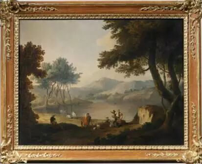 这是由十八世纪末期伟大的风景画家、建筑装饰画家弗朗西斯科•帕尼尼绘制的一幅布面油画。这幅画在色调上的运用偏向于绿色和天蓝色之间的调和色,据说这是该作品的独到之处,在菊色灯光的映衬下,画面上的人物会突然“活”过来。弗朗西斯科•帕尼尼的作品主要收藏在巴黎卢浮宫博物馆和维也纳阿尔贝蒂博物馆。