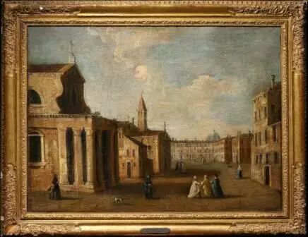 路卡•戈莱瓦里斯(Luca Calevaris,1663-1735)意大利画家、雕刻家和建筑师,是公誉的十八世纪威尼斯城市风景画之父。他以一种新的严谨形式入画,他对透视画法的严格遵守,折射了他早年数学方面的训练。戈莱瓦里斯的艺术天赋大概得自其父的遗传,后者是位画家和设计师,但在戈莱瓦里斯尚幼之时即已去世。展览中的《游人散步的威尼斯风格的广场》是一幅布面油画,描绘的是威尼斯广场的街市风景。在十八世纪,路卡•戈莱瓦里斯就被尊为第一位对威尼斯风景画贡献突出的画家,至今他和范•芮特仍被认为是威尼斯城市风景画的奠基人,并为此后的卡那莱托、马里斯基、戈地所延续。戈莱瓦里斯并非一位高产艺术家,他为人所知的所有作品也仅限一百五十幅油画,其中大多数是圣马可广场的风景画和周边景物,他也画了许多遗址和港口的随笔画,以及一些风景画。