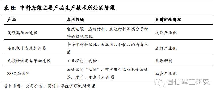中科海维成立于2009年,2013年被中广核核技术公司购并,本次重组完成后,成为上市公司的全资子公司。区别于中广核达胜在中低能加速器领域的主导地位,中科海维在在高频高压和直线加速器领域国内领先,是国内唯一同时具备高频高压和高能直线工业用电子辐照加速器自主技术的专业生产商。