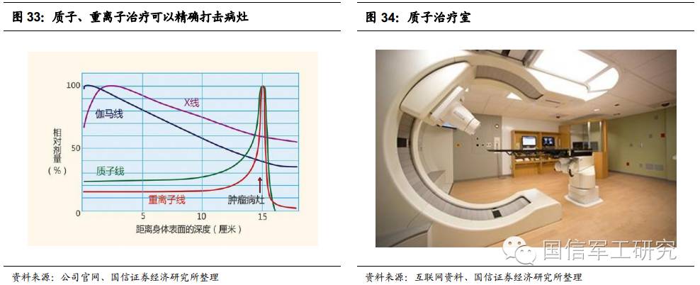 核医疗设备:公司主要布局三类医用加速器,分别为医用直线加速器、质子加速器和重离子加速器。预计中广核将集合集团内包括中广核达胜、中科海维在内的尖锐科研实力进行技术攻关。1)医用直线加速器:目前国内存量3000台,是现阶段肿瘤放疗中最符合国情,性价比最高的治疗设备。中科海维工业直线加速器已经广泛应用于工业探伤、杀菌消毒等领域。若未来能够在医用直线加速器的研发取得突破,实现国产化替代,将能成功切入30亿/年的市场。2)质子、重离子加速器:代表了肿瘤治疗最前沿技术,其中质子加速器在美国已经较为普及,国内只有上海瑞金医院一家拥有质子、重离子治疗中心,单个疗程约30万;兰州近代物理研究所研制的重离子加速器已经成功出束,正在武威建设相关医院,公司与兰州近物所历来保持优良的合作关系。公司在该领域拥有优秀的研发团队,预计后续将在建立市场渠道、国内外合作等方式切入质子、重离子后续运维、咨询服务业务等广阔市场。