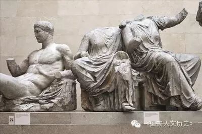 帕特农神庙群雕之一,面对它们,拜伦曾在诗中强烈谴责埃尔金的掠夺行为,济慈则写诗赞美雕塑庄严和谐的古典美