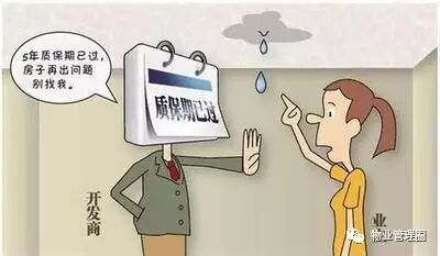 保修期内以及保修期内没修好的房屋裂缝、房屋透寒、烟道漏烟串味、墙面或楼顶防水、卫生间和厨房防水等问题,都是开发商的责任,与物业公司没有关系。
